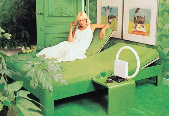 The Auronde is made of beech wood with characteristic aluminum details and rounded legs. Frans de la Haye wanted to design a sustainable and modern bed. Not just a functional bed, but a decent piece of furniture in which one can read or watch television. It is the first bed in which luxury and comfort are brought together. That was a perfect fit in the seventies, at that time central heating came tot the bed room which changed the function of the bed room. The bright colors make the Auronde a piece of furniture that turns the bed room into a living room.