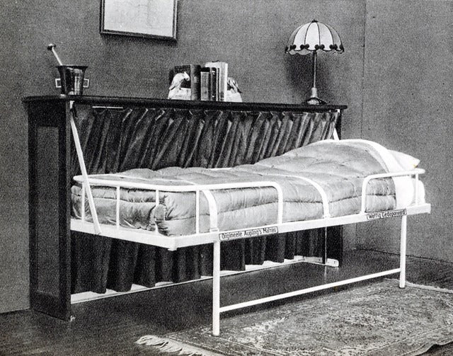 Technical director Welschen designs Aupings first folding bed. With this bed-in-closet-combination you have enough space in your room during the day and at night you have a place to sleep. There is a huge demand for this solution in Holland at the time because people live in small houses. The folding bed is also available as mechanical edition with electromotor.