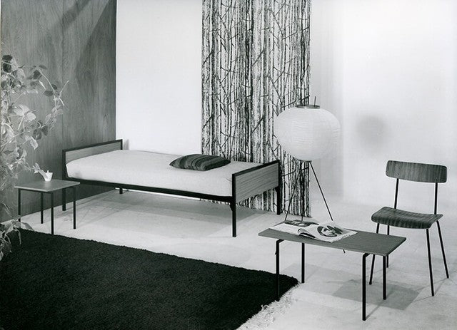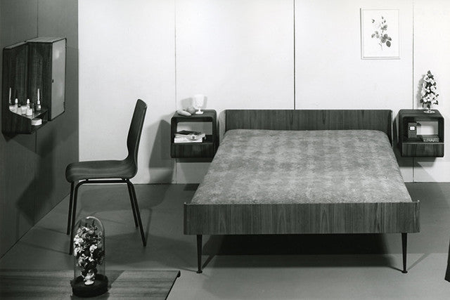 Fragile and transparent designed bed room furniture. It reflects Auping’s clear choice for the materials wood and steel, that combination is becoming Auping’s signature through the years. This bed room furniture is designed by Wim Rietveld (son of architect Gerrit Rietveld), he is a pioneer of the Dutch Industrial design and designer of furniture for straight forward interior.